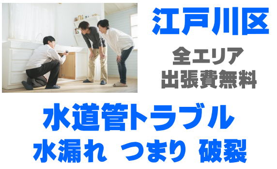 江戸川区でパイプの修理を行っています。水漏れ、つまり、水道管破裂、凍結、漏水などのお困りごとはご相談ください。