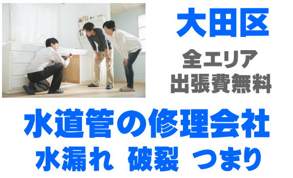 大田区でパイプの修理を行っています。水漏れ、つまり、水道管破裂、凍結、漏水などのお困りごとはご相談ください。